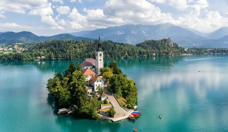 7. The city is located in the central part of Slovenia in a natural depression surrounded by the high peaks of the Julian Alps.